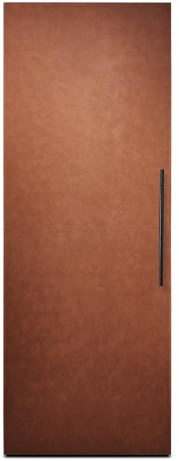 Cuts leather panels complement JennAir® column refrigeration, adding further depth and intrigue to each piece.