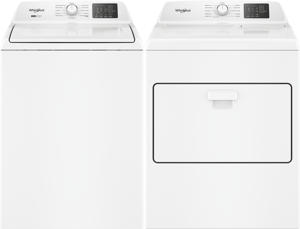 Whirlpool® White Laundry Pair with a 4.2 cu. ft. capacity top load washer and a 7 cu. ft. capacity gas dryer.Read More